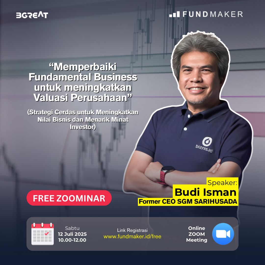 Belajar langsung dari Budi Isman, mantan CEO SGM Sarihusada yang berhasil meningkatkan valuasi perusahaan hingga 500% dalam 5 tahun.